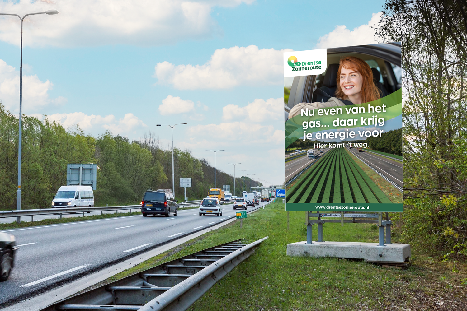 De opdracht was om een creatief concept te ontwikkelen voor de Drentse Zonneroute A37, een initiatief waarbij langs de snelweg zonnepanelen worden geplaatst en dit wordt gepresenteerd als een herkenbaar platform. De visuele stijl moest uitnodigend, helder en in beweging zijn, zonder technisch of overheidsjargon. Het doel was om de Zonneroute neer te zetten als een beweging: iets waar bewoners, ondernemers en partners zich trots aan kunnen verbinden en actief aan mee kunnen bouwen.